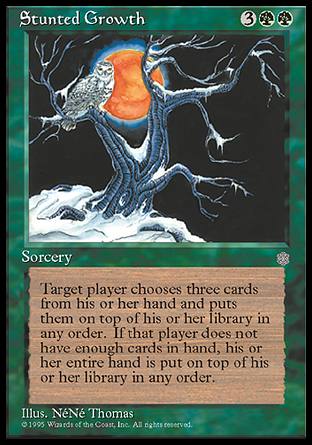 : Target player chooses three cards from his or her hand and puts them on top of his or her library in any order.